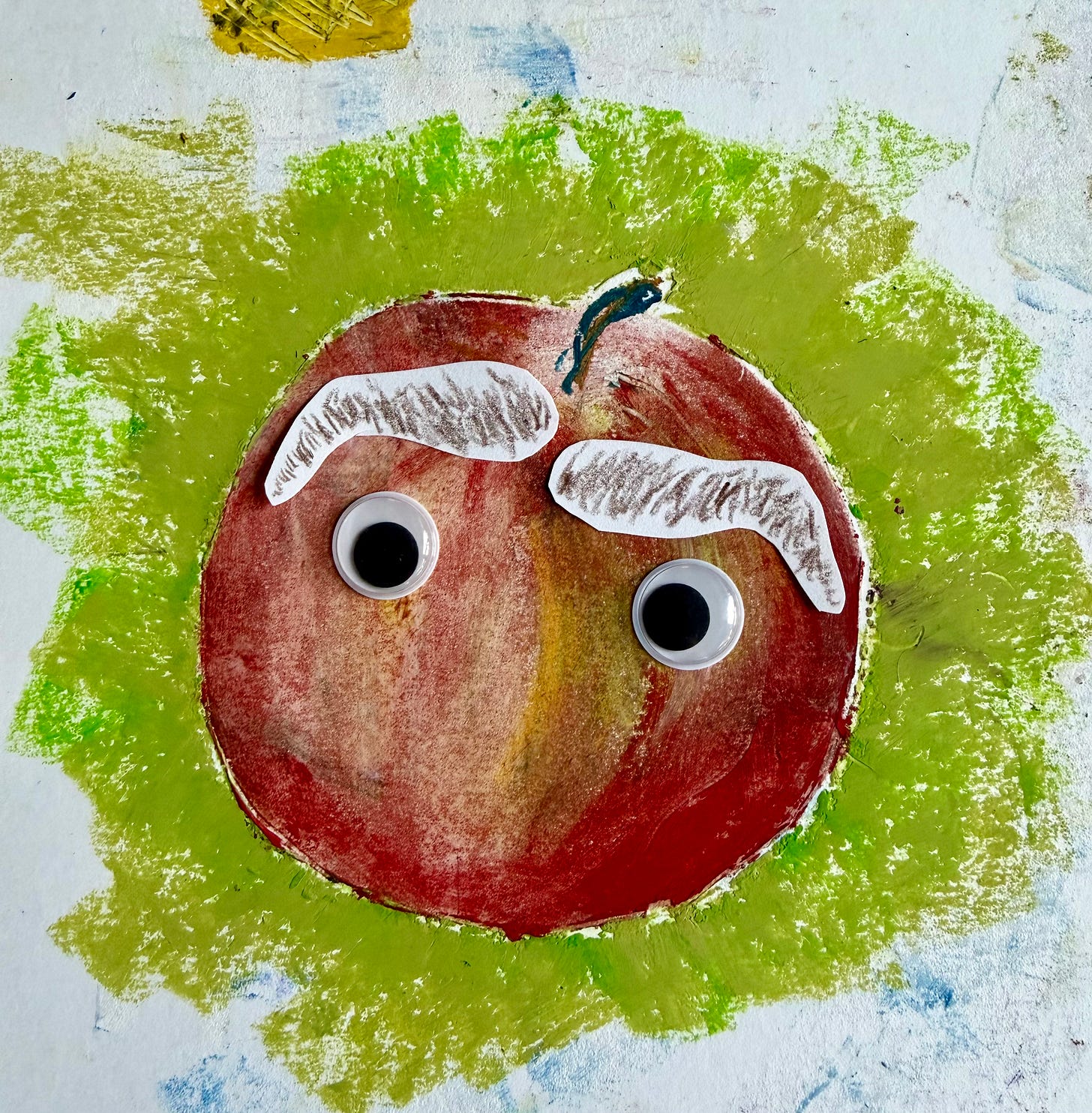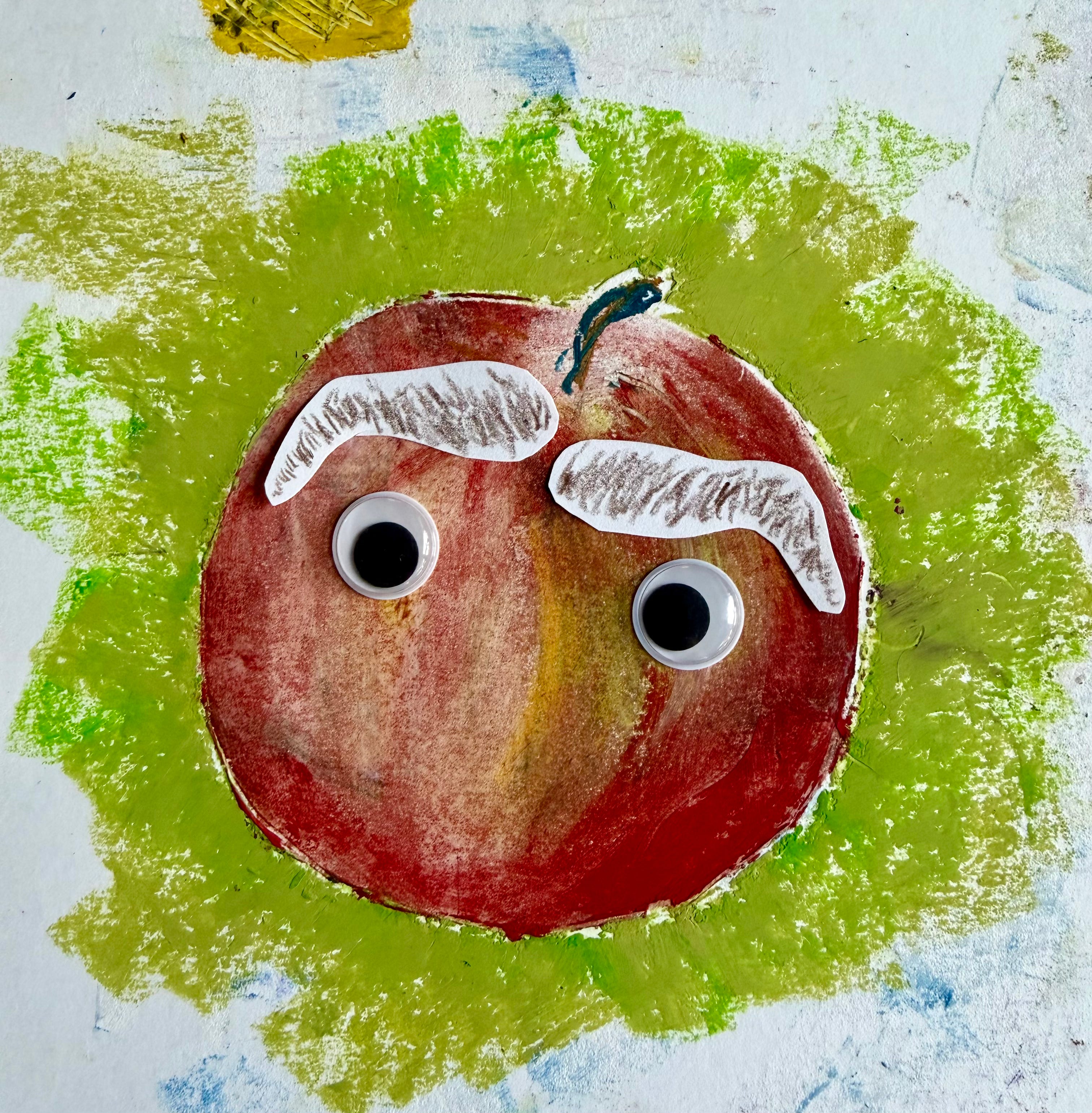I love the way the pastels feel. They’re creamy and thick and when I drag them across the paper to make my repugnant pears, the power is intoxicating. (Maybe I am allergic.) They smudge together and blend to create shadows and valleys and if I’m not careful, I end up with oil pastels all over my face and my glasses. I’m not creating anything you’d recognize. I’m abstracting the shit out of every attempt. It feels raw and goofy and no one is watching or judging or caring. It’s like dancing with the lights off. It’s like singing when the car windows are sealed tight. It’s like writing in a journal.
